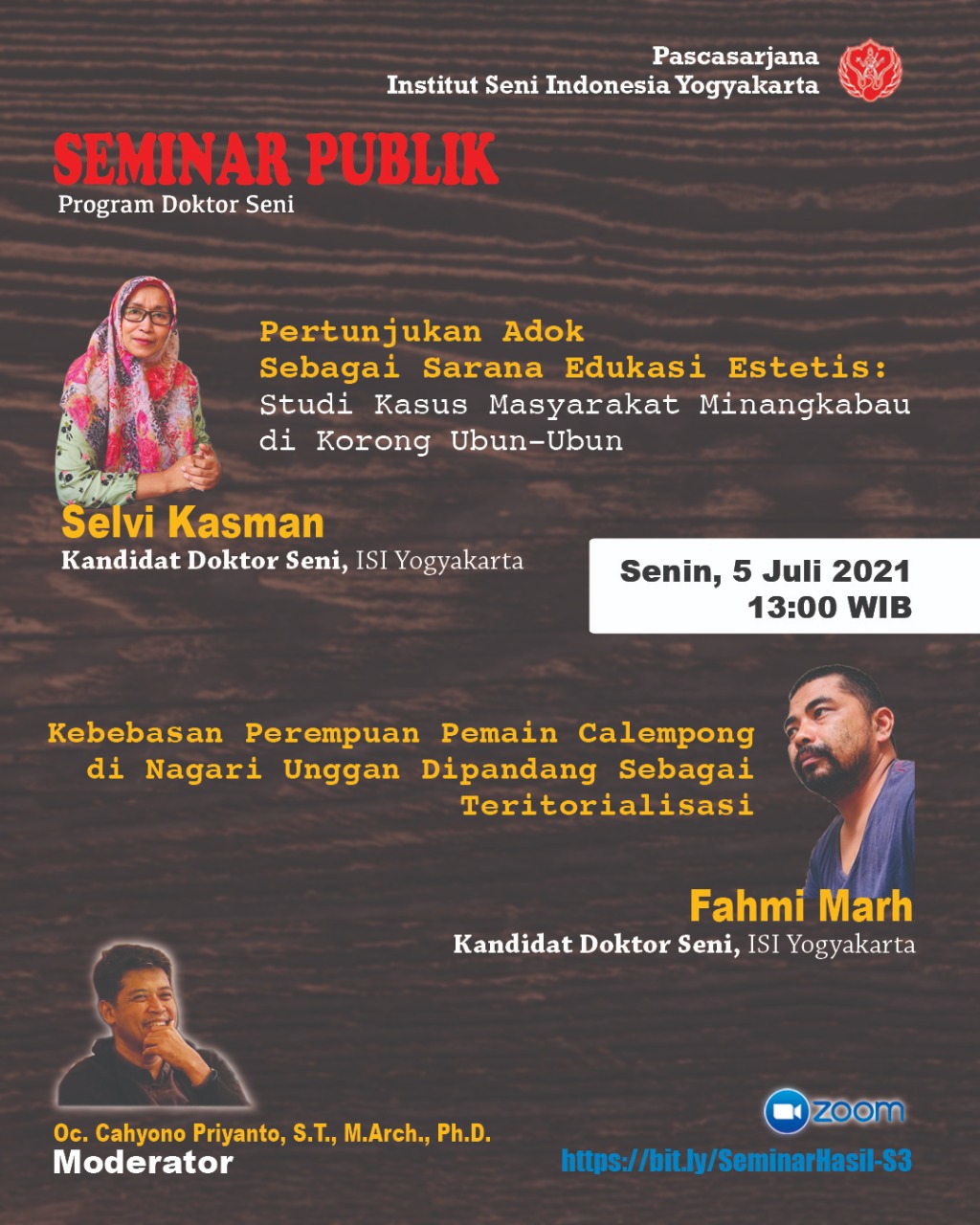 Program Studi Seni Program Doktor akan menyelenggarakan Seminar Publik dengan kandidat doktor Selvi Kasman dan Fahmi Marh, secara daring (online). Seminar publik kali ini akan mempresentasikan proses dan hasil penelitian …